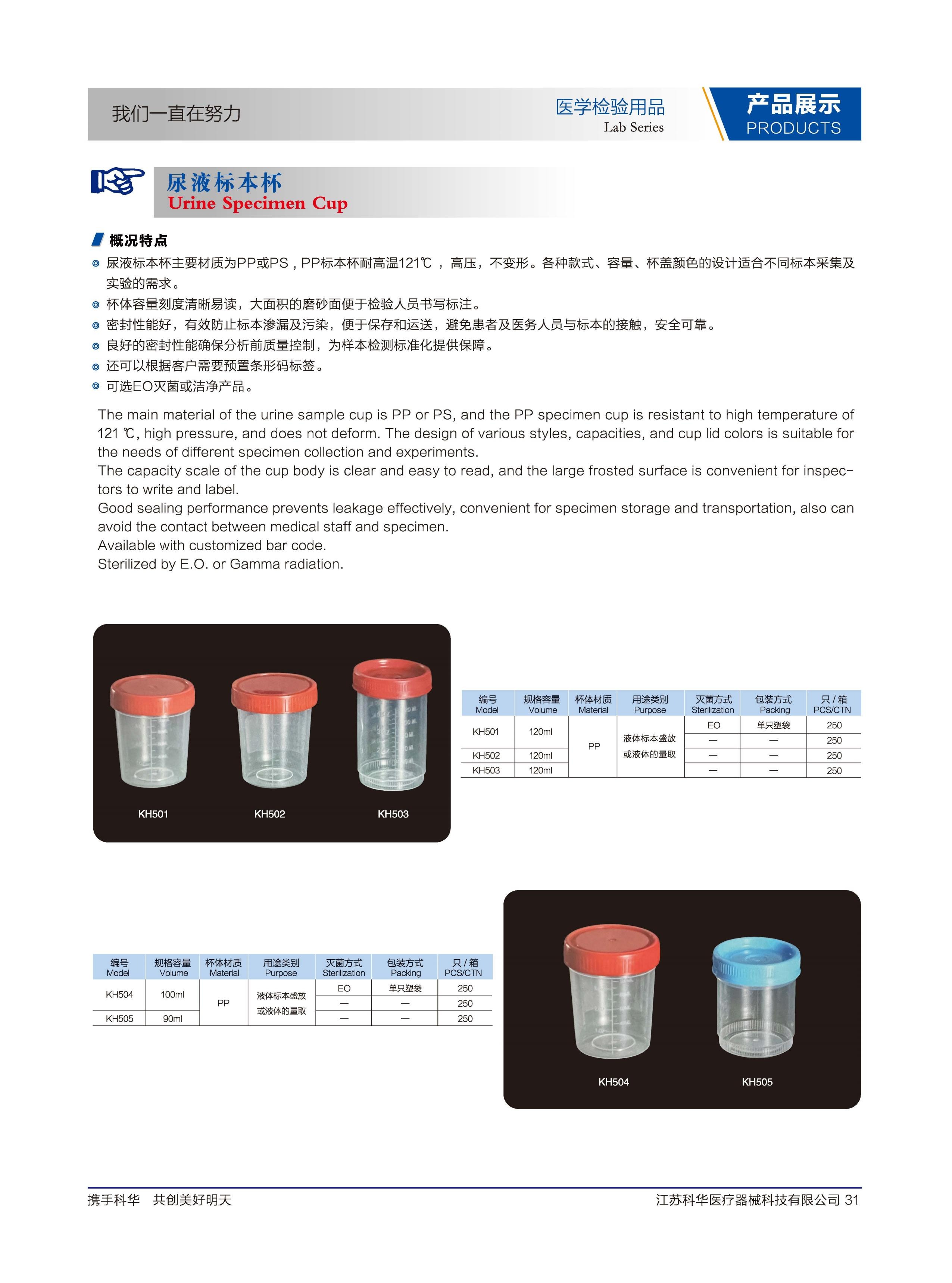 科华医疗生产的尿液标本杯,医用级材质,密封防漏。适用于临床和实验室尿液标本采集和储存。通过CE和ISO 13485认证。